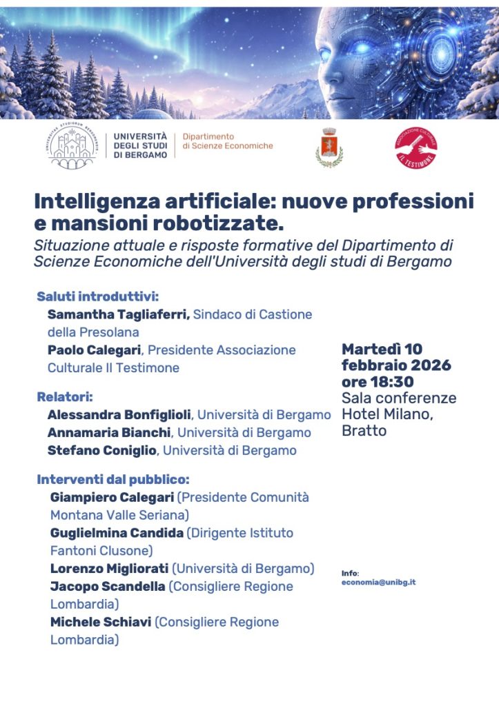 10/02/2026, h. 20.45 Hotel Milano, Bratto (Castione della Presolana) Università di Bergamo, in collaborazione con il Testimone